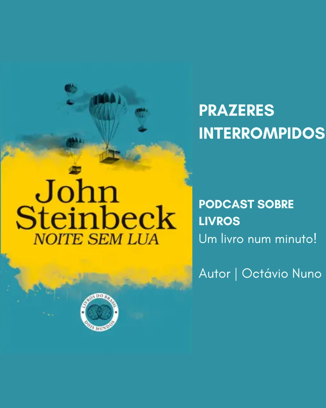 Podcast sobre livros. Um livro num minuto! Em todas as tuas redes sociais, plataformas de podcasts, mas também nas rádios e jornais. Boas leituras!